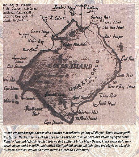 V žebříčku top ten míst, kde jsou zaručené ukryty obrovské poklady, je na čelném místě Kokosový ostrov. Patří Kostarice a nachází se v Tichém oceánu nedaleko břehu Kolumbie. Na ostrůvku širokém čtyři a dlouhém osm kilometrů je ukryt například poklad z lodi Mary Deare-peníze a cennosti obchodníků z Limy z počátku minulého století. Něco již bylo objeveno, ale hlavní část zůstává v písku či pod hladinou moře.