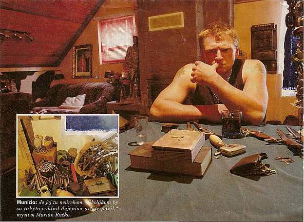 Náruživý Marián bol fanatikom vojenskej histórie od detstva. „Na učňovke som dejiny vojny mohol prednášať, “ zasmeje sa. „Učiteľka nechápala, ako to všetko môžem vedieť. Už ako chlapec som sa dostal k nejakému strelivu, ktoré som sa naučil zneškodniť, vyčistiť. Samozrejme, kedysi som bol smelší, dnes sa už len tak do niečoho nepustím. Všetko, čo mám, je riadne zneškodnené, hoci v niektorých prípadoch mi bolo naozaj ľúto, “ priznáva. „Nie som fašista, ktorý by si doma kreslil a vyrábal fašistické relikvie, ale vlastním aj pamiatky z toho neslávneho obdobia. Majú pre mňa historickú hodnotu. Päť rokov som žil v Nemecku, odkiaľ som si priniesol pár vecí, no pred rokom tu bol požiar, pri ktorom mi veľa vecí pomizlo aj zhorelo. Aj vtedy spoluobčania stáli pod oknami a vykrikovali, že mám doma bomby, “ trpko zaspomína. „Polícia v tom čase našla u mňa štyri granáty, ktoré vraj neboli zneškodnené. Takéto, “ ukáže na poličku. „Zalial som ich riadne olovom. Keby boli funkčné, tak pri tom požiari explodujú. Dodnes s tým mám opletačky, dokonca ma čaká súd. “
