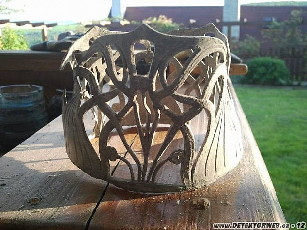 11. 05. 2015, 16:46Secesní žardoniera. Uvnitř byla vsazena skleněná nádoba-miska. Většinou mat. alpaka. ;-)