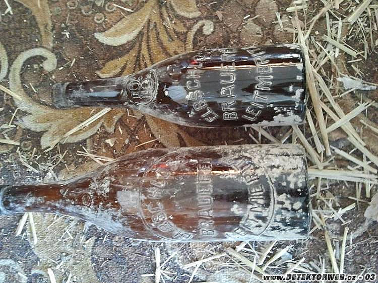 tak jsem objevil zasypaný sklep jedné bývalé hospody. Tak jsem kopal a byly tam dva výklenky a v nich toto. Kdyby někdo věděl o té ozdůbce, co je zač, může to být třebas na sklenici? Tak už mám celkem 21 lahví, 20 Leitmeritz a 1 Lobositz.