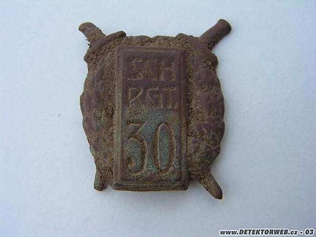 15. 10. 2015, 22:25Pěkný nález gratulace. Značka SCH RGT 30 - Schützen Regiment 30 - česky - střelecký pluk 30 je válečná výroba. Dřive landwehrinfanterie regiment 30 - zeměbranecký pluk 30.Za války byli všechny zeměbranecké pluky přejmenované na střelecké pluky. Pěkný nalez