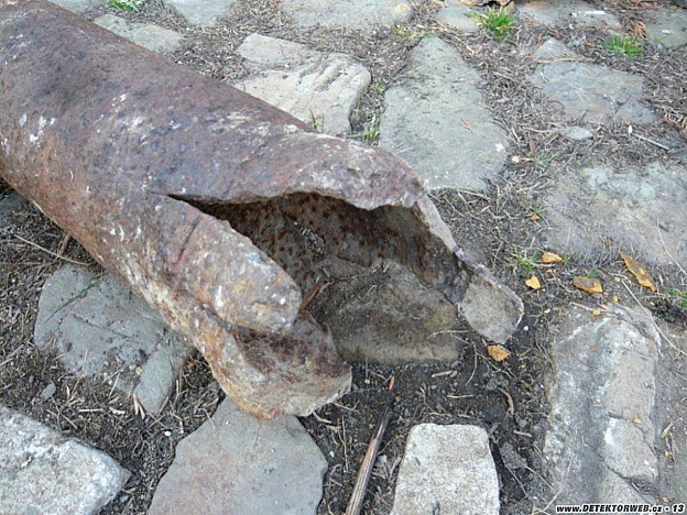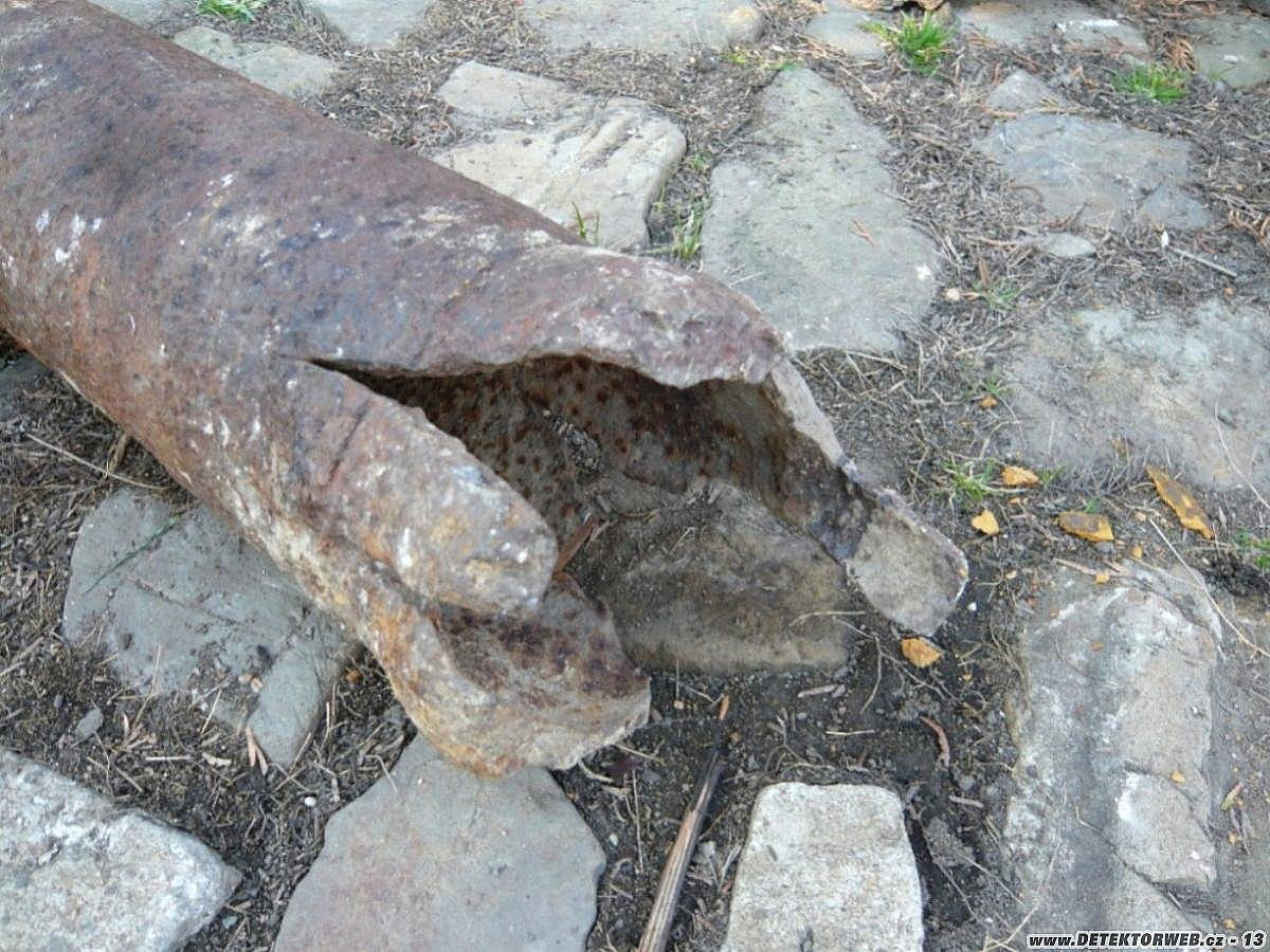 Zdravím.Zasílám pár fotek z terénu. Letošní zima se co do počasí vydařila, jen ty nálezy tomu neodpovídají. Neví někdo, jestli ta roztržená trubka má nějakou souvislost z válkou (d. 96 cm, průměr 13,5 cm, síla stěny 5 mm - kaťuše je tenčí)? Pozná někdo výrobce té maďarské čutory?